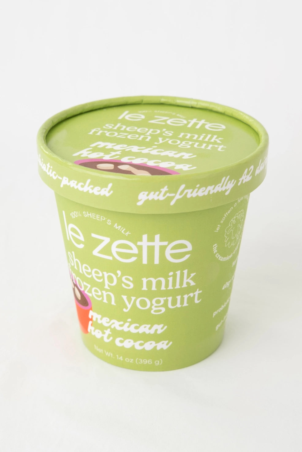 Introducing our sheep’s milk frozen yogurt! A hand crafted, A2-dairy, protein & probiotic-packed sheep’s yogurt whipped with extra virgin olive oil, vanilla, organic agave syrup, cinnamon and hot cocoa for a tart & tangy frozen yogurt treat! Enjoy your favorite hot chocolate in frozen yogurt form all year long!